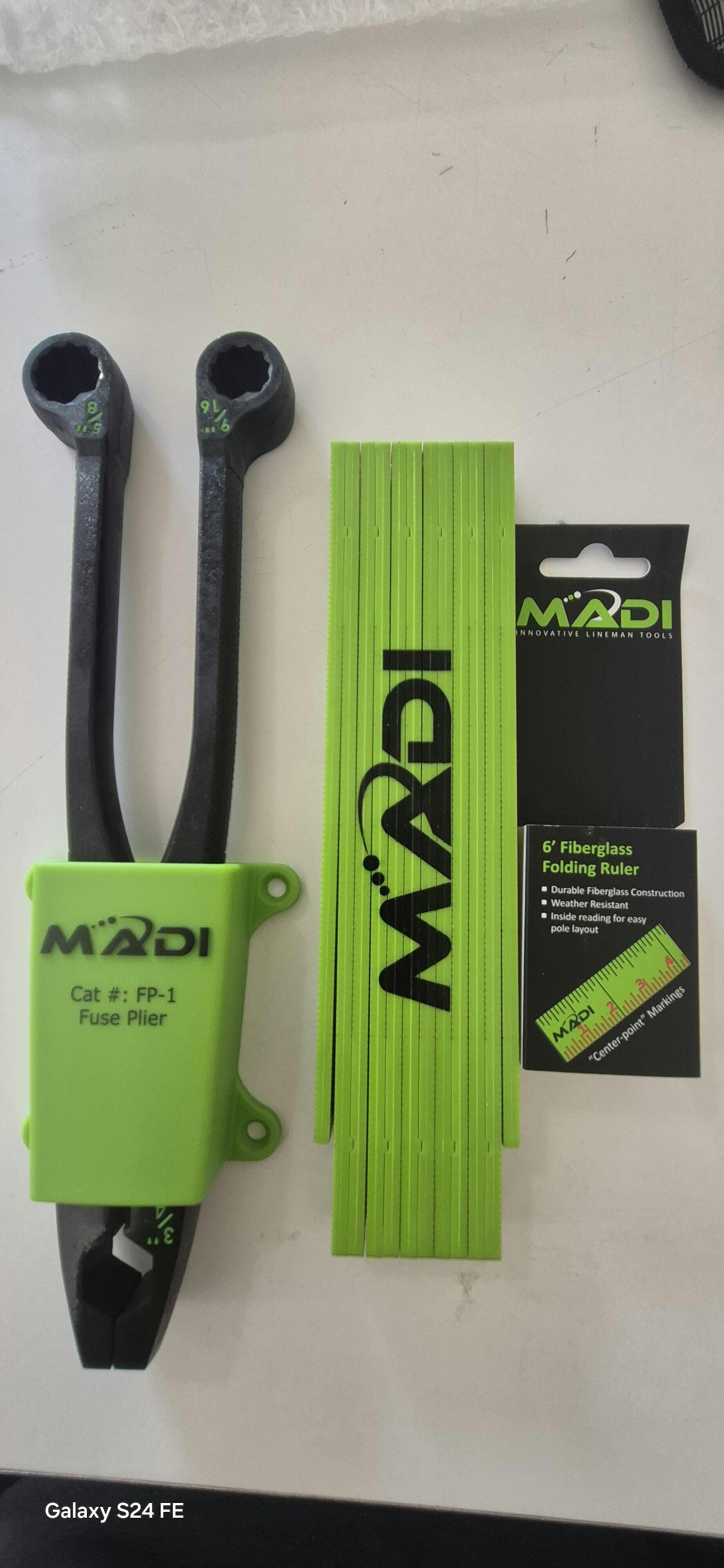 The Madi MPFR-6 6' folding ruler is a reliable and versatile tool designed for linemen. With inside reading for easy and accurate layouts, it features measurements marked on both sides and edges, graduated to 1/16-inch for detailed accuracy.